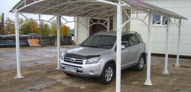 В целом можно сказать, что это очень удобная конструкция, просто необходимая особенно для тех, кто владеет несколькими транспортными средствами и проживает за городом. В городе такие конструкции используются для обозначения корпоративных стоянок. Выполняя сразу две функции: защитную и распознавательную. Кроме того, такой навес сможет защитить ваш авто если он стоит под окнами многоэтажки от тяжелых предметов с верху.