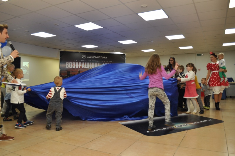Интересно отметить, что для представления главного героя – нового поколения седана Lifan Solano II, в центр всеобщего внимания ведущий пригласил «новое», молодое, подрастающее поколение – детей! Под торжественную музыку дети сорвали накидку с автомобиля – вот она, наша долгожданная новинка - седан Lifan Solano II.