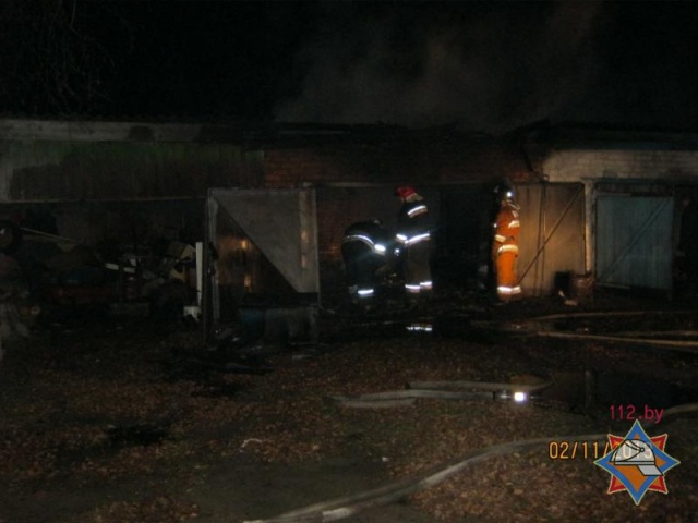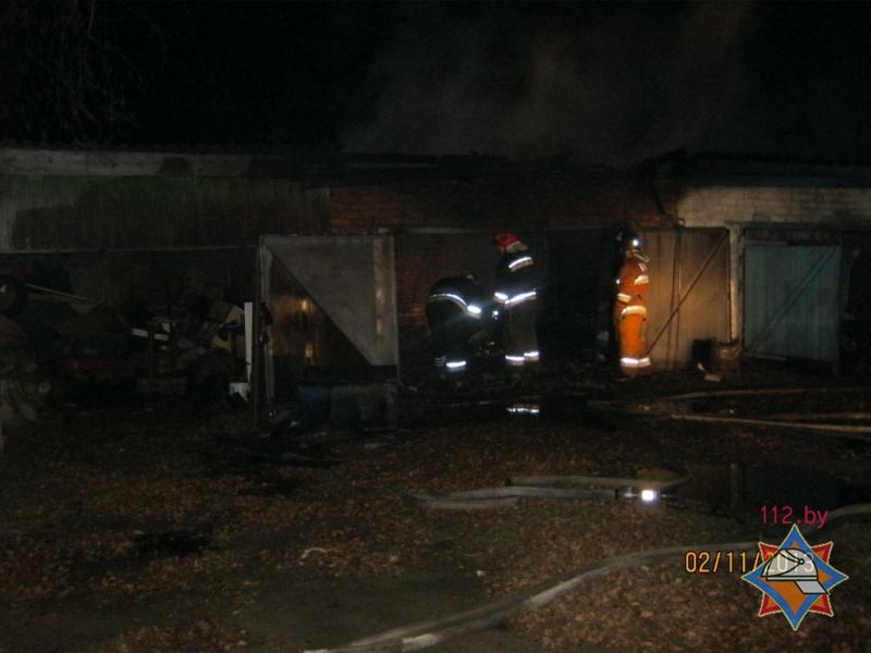 В Мстиславском р-не вместе с гаражом сгорел автомобиль ВАЗ (фото)